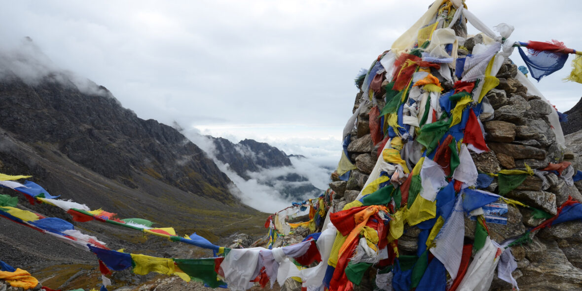 This morning there is time to explore a little around Gosainkund before we need to head down. From the tea houses the trail descends a little way from the Gosainkunda Lake before a small climb to a charming pass where you find a shrine and Bhuddhist prayer flags as well as a lovely view back up towards Saraswati Kund to Gosainkund. From here the trail contours around the mountain through a spectacular rock strewn landscape, leading downwards to a chorten on the ridgeline above the little tea house village of Laurebina. From here you can have magnificent views across Langtang valley to Langtang Lirung and to the west are Himalchuli, Ganesh Himal and Manaslu. From Laurebina, we descend to Sing Gompa on a beautiful forested trail. There is a small monastery, still intact after untold years and a small cheese factory in Sing Gompa.
