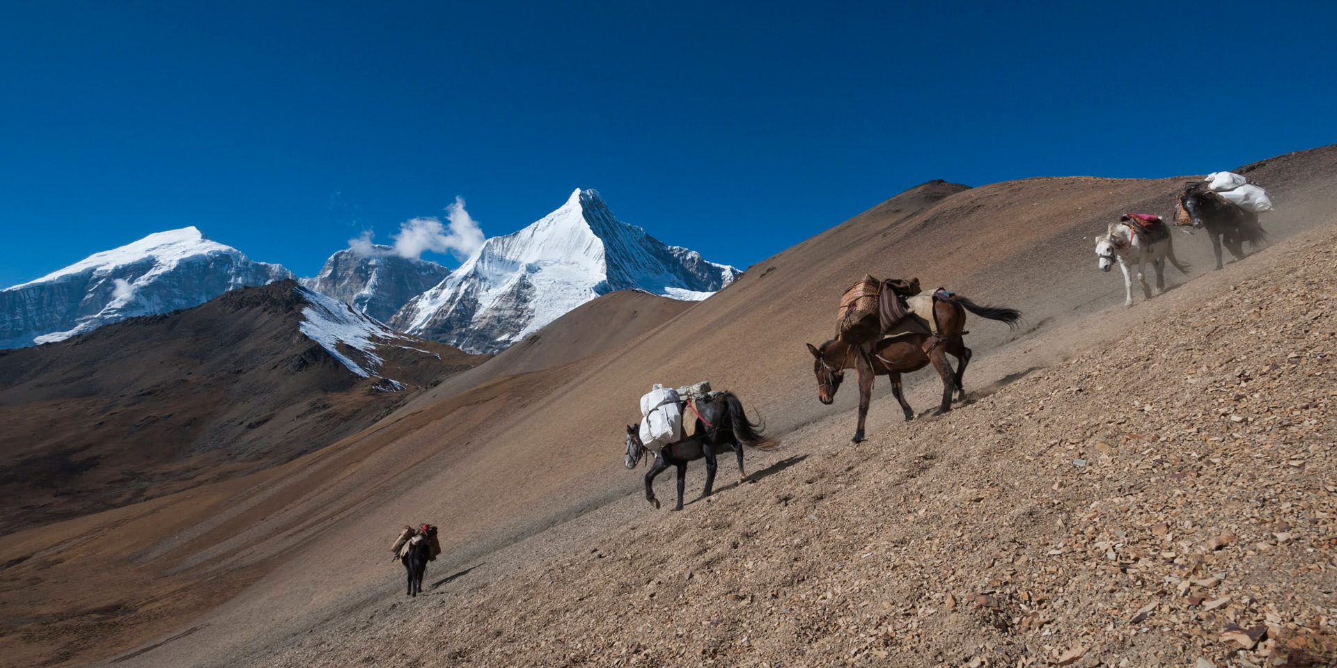 Several trails lead in other directions, such as the trail to Tremo La (LA: Pass), which was the old salt-trading route to Tibet. About 45 min beyond this is our camp and also where we will have lunch after about 4 hours of walking through an ever-narrowing valley.