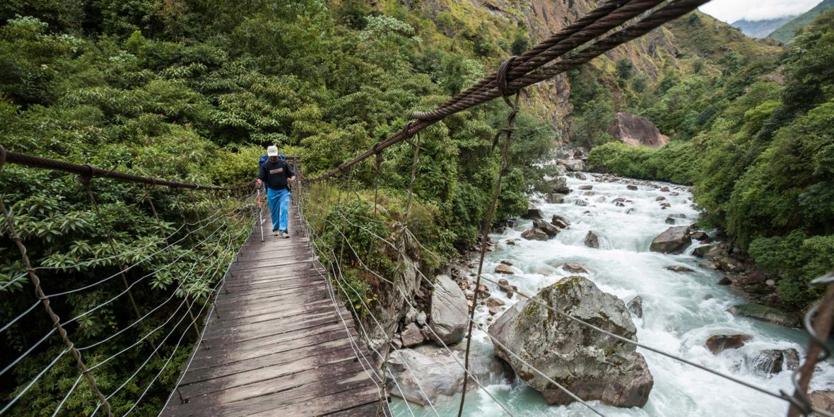 We have a long day ahead of us today, so we start early. We trek a newly upgraded trail along the river instead of taking the old route that was a big climb over a nasty landslide and a steep descent. We quickly cross the river twice before descending into a steep gorge though beautiful jungle on a very narrow trail. These bamboo forests are prime Red Panda habitat, so keep your eyes peeled! We eventually re-cross the river on an old suspension bridge, do look down the gorge is just amazing here. Soon after we come out of the forest and into the village of Yaksang where we will have a simple lunch. In the afternoon we continue descending down through the village of Hellok, the first real village we have seen since Gunsa, to the road head at Ranipul, not far from where we started the trek.