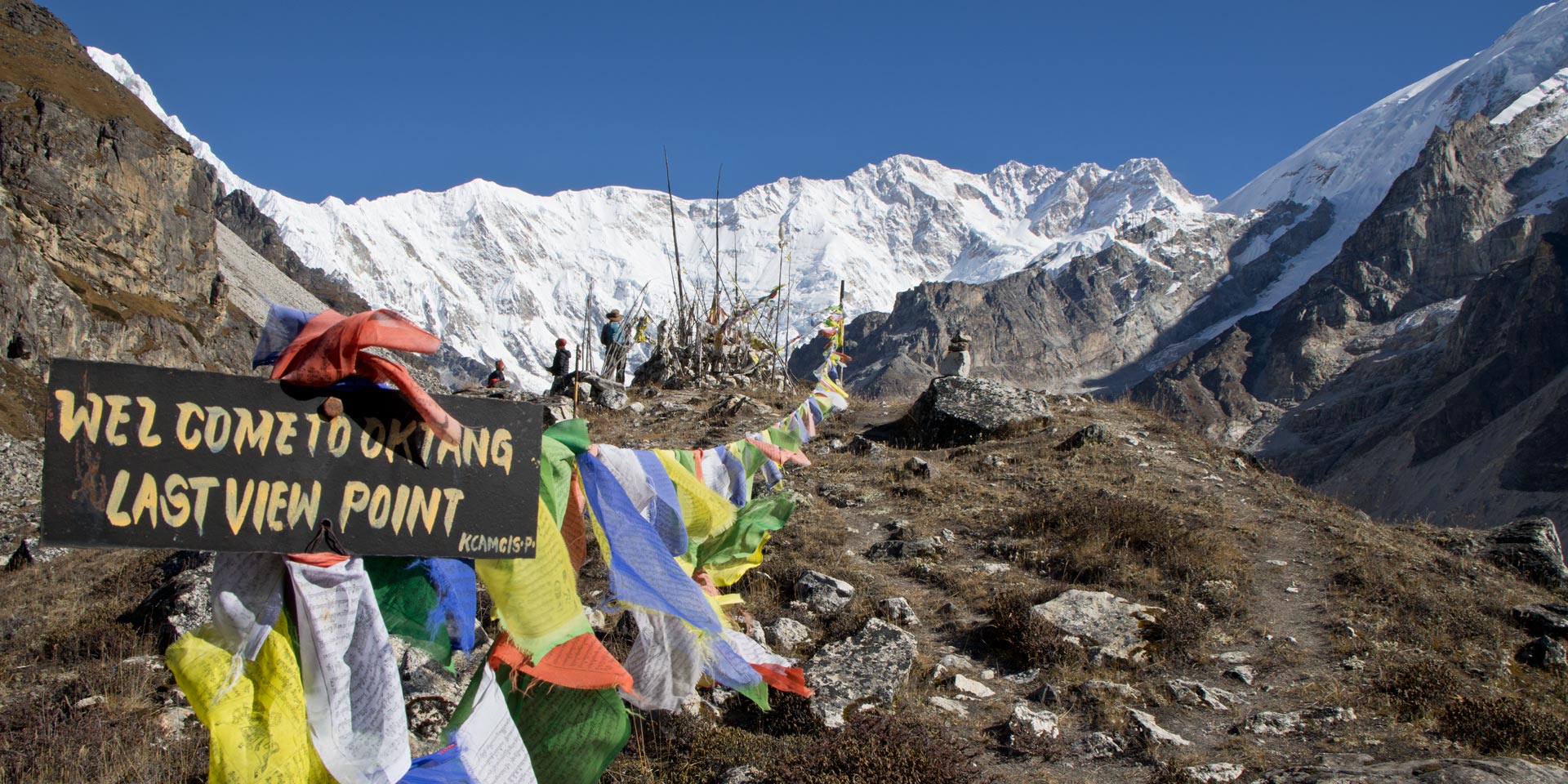 We continue on from Ramche and soon start getting views of the remaining peaks in the Kabru range and then all of a sudden Kanchenjunga comes into view and with that Yalung Khang and Khambachen as well. This is truly out of the this world mountain scenery, amazing! Look out for blue sheep, they are often seen up here. The sunset can be good from Oktang but it is a long way back into darkness to the very basic lodge at Ramche, factor that in! More conservatively, hike for a packed lunch at Oktang (there is no lodge) and descend to Ramche before darkness sets in.