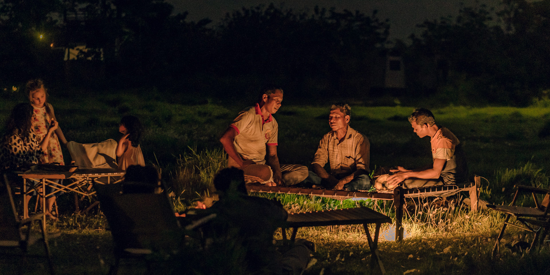 We later return to the camp, and in the evening, we gather around a bonfire to enjoy captivating jungle stories from a Tharu Wisdom Keeper or savor traditional Sadana music performed by local Tharus.