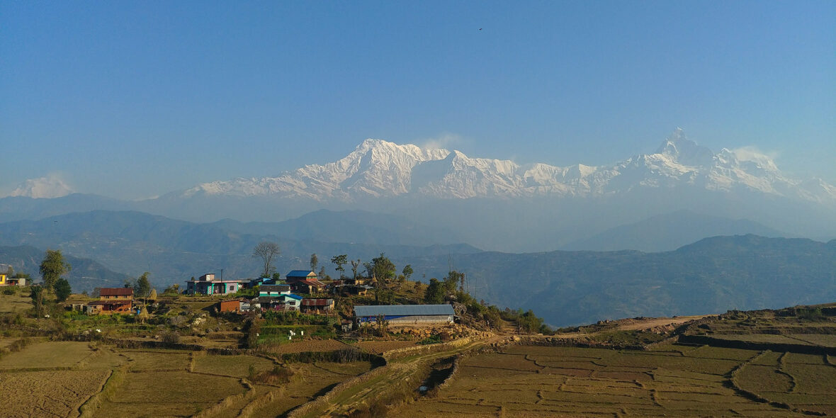 Emerging from the trees briefly at Thulunchour you then continue under the cover of the forest until the path joins a dirt road, from which you can see panoramic views of the mountains. These include the Annapurnas, Lamjung, Gangapurna and Machhapuchhare (Fishtail) as well as three peaks over 8,000m: Dhaulagiri, Annapurna I and Manalsu, in the distance. Continuing along the jeep trail takes you gently uphill to Panchase Bhanjyang. Similar to last night’s stay, this village is home to Gurung and Brahman people.